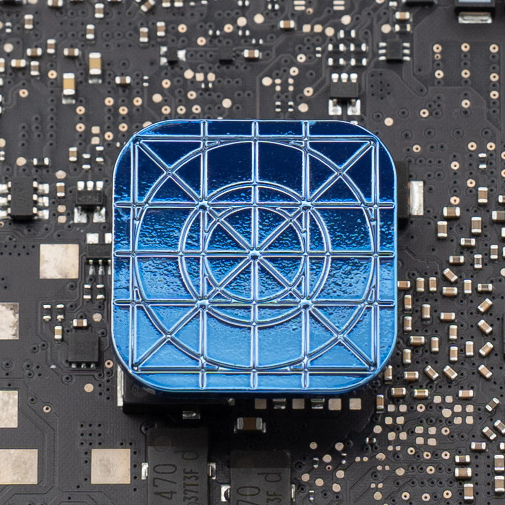 0.75 x 0.75 in, blue anodized coating with inset template lines, 1 rubber clutch