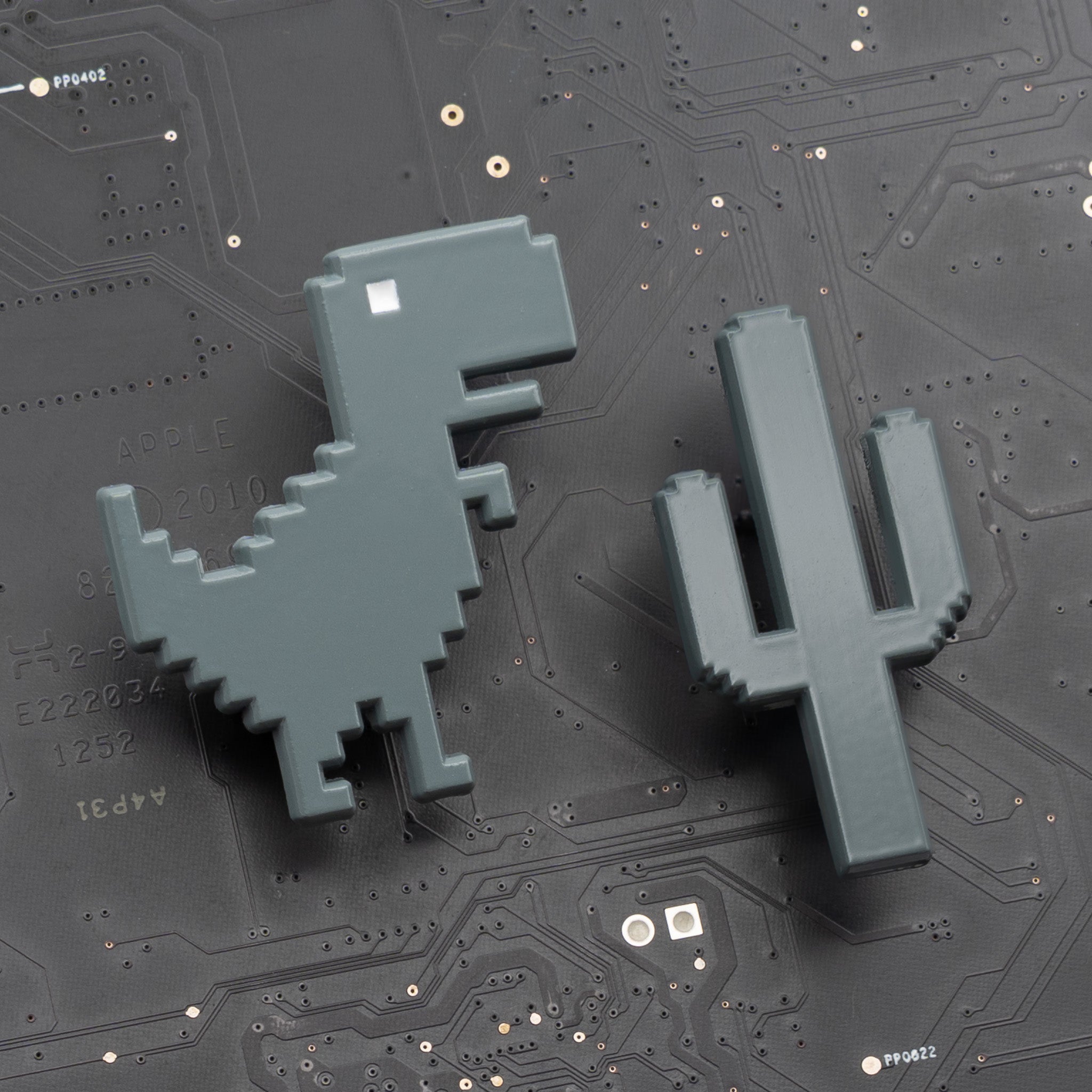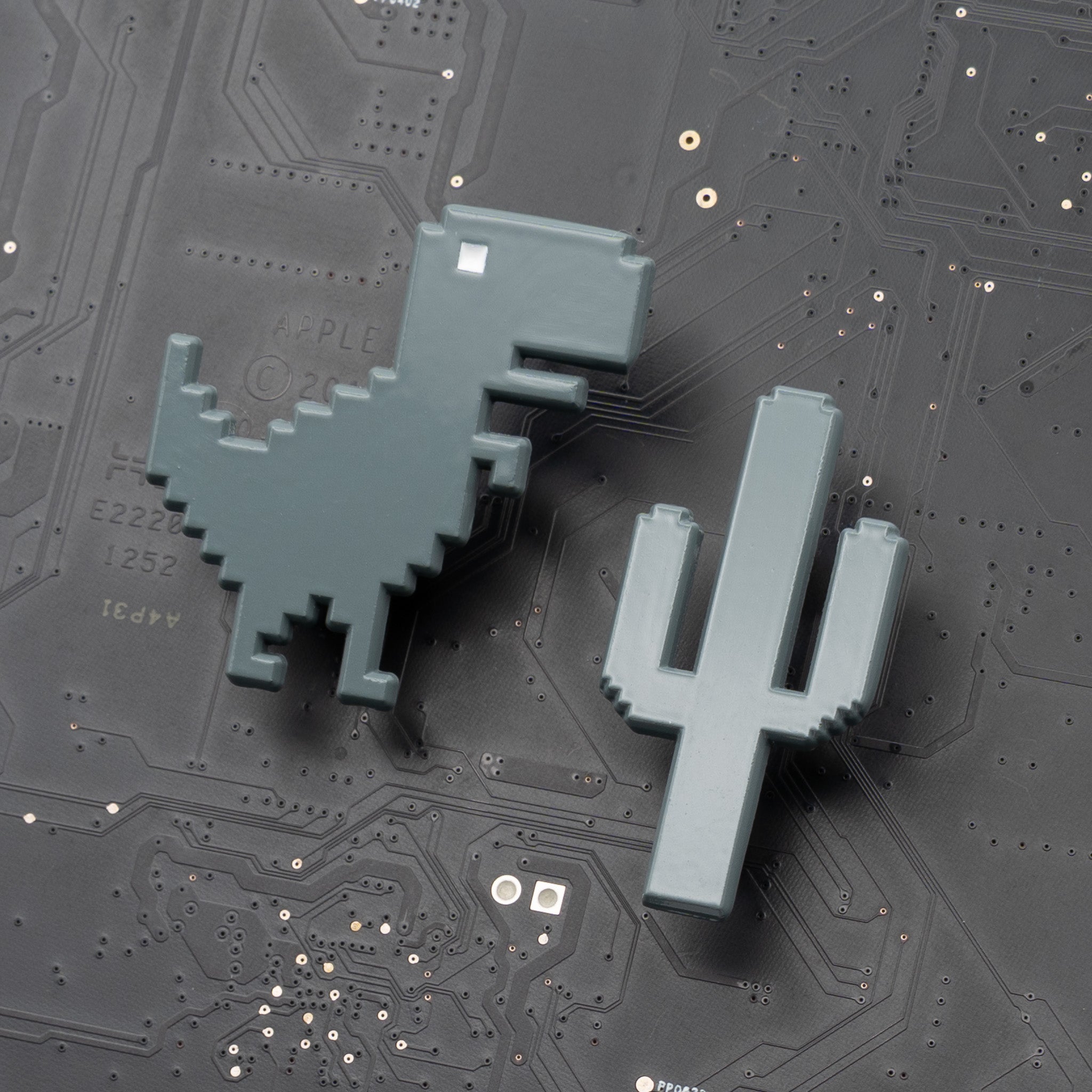 - Size: Dino 1.14 × 1.06 in; Cactus 1.21 × 0.60 in