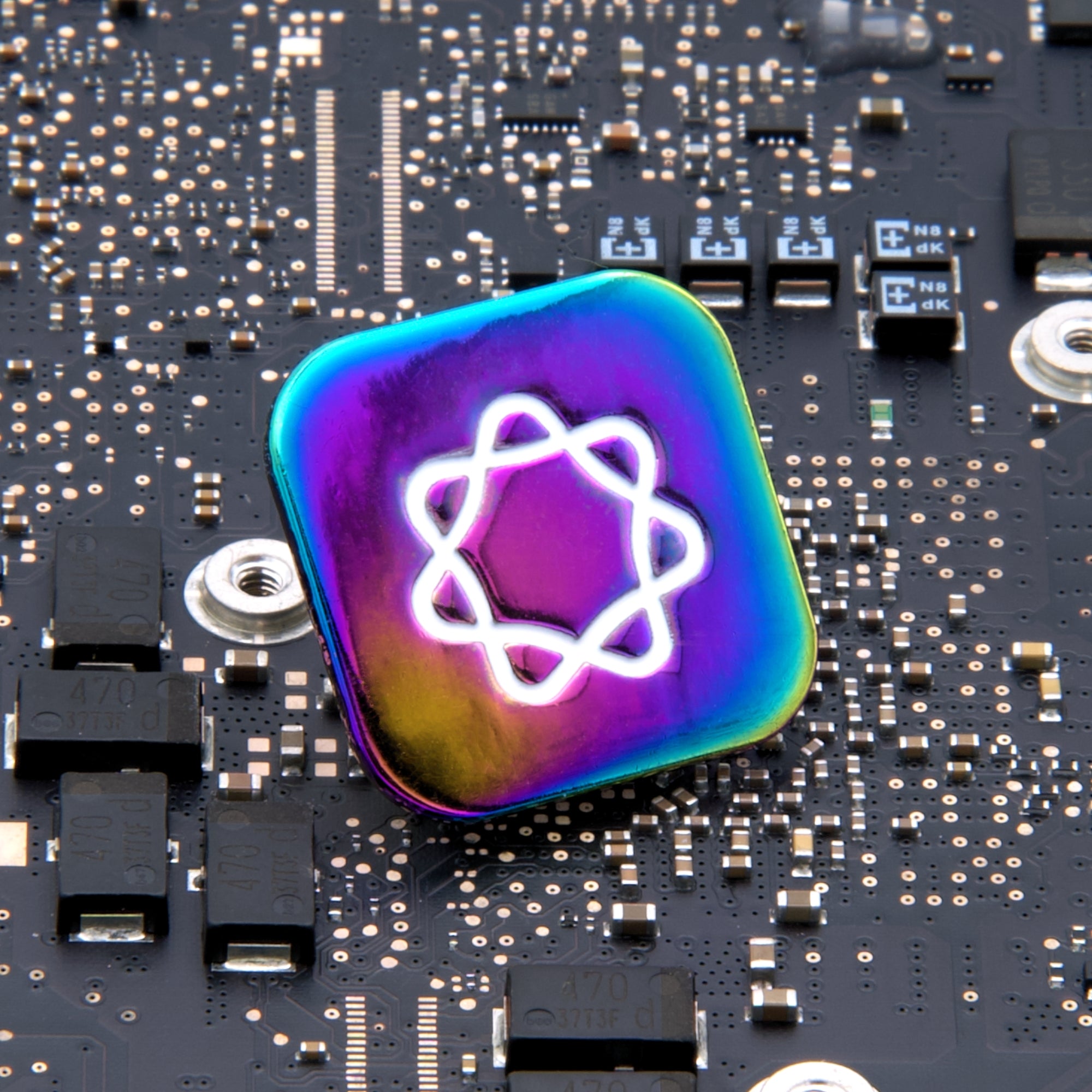 0.75 x 0.75 in, rainbow anodized plated, 1 rubber clutch