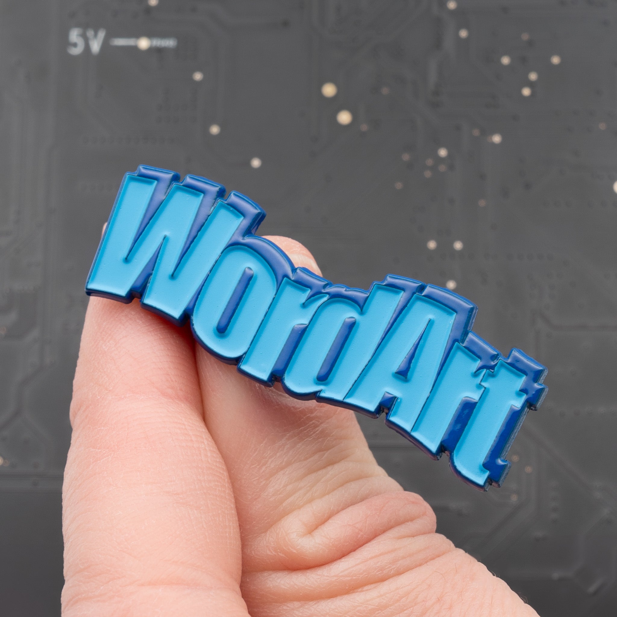 Wavy blue, maximum nostalgia. This pin channels the classic “I just discovered text effects” era, when every heading deserved a gradient, a curve, and a little drama. Perfect for designers, office warriors, and anyone who can still hear the dial-up tones in their soul.